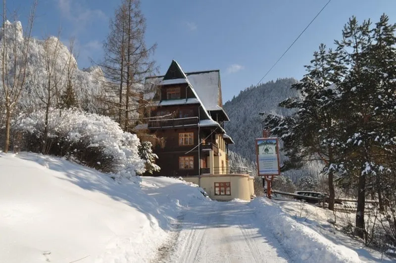 Już na samym początku czeka nas miła niespodzianka. Pomimo tego, że Schronisko Trzy Korony znajduje się lekko na uboczu, to droga do niego jest doskonale utrzymana nawet podczas srogiej zimy. Możemy więc spokojnie podjechać i zaparkować pod samym hotelem.