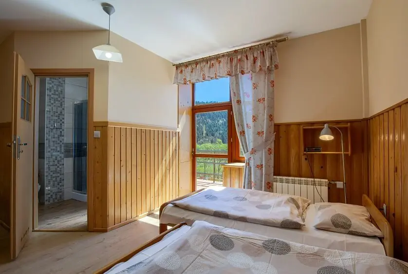 We offer 50 beds in 2-,3-,4- and 5-person rooms. The total number of rooms is 17. All rooms have bathrooms. The vast majority of rooms have balconies and the rooms on the first floor have a big terrace which allows sunbathing and admiring the beautiful sights spreading around the Mountain Hut. From the room windows you can enjoy a breathtaking view of the Pieniny Mountains as well as Mount Trzy Korony, Dunajec River gorge,  Red Monastery and the scenery of the Tatra Mountains.